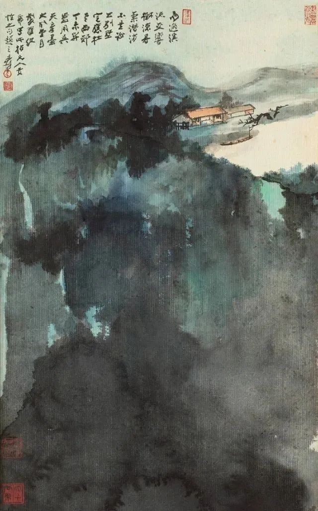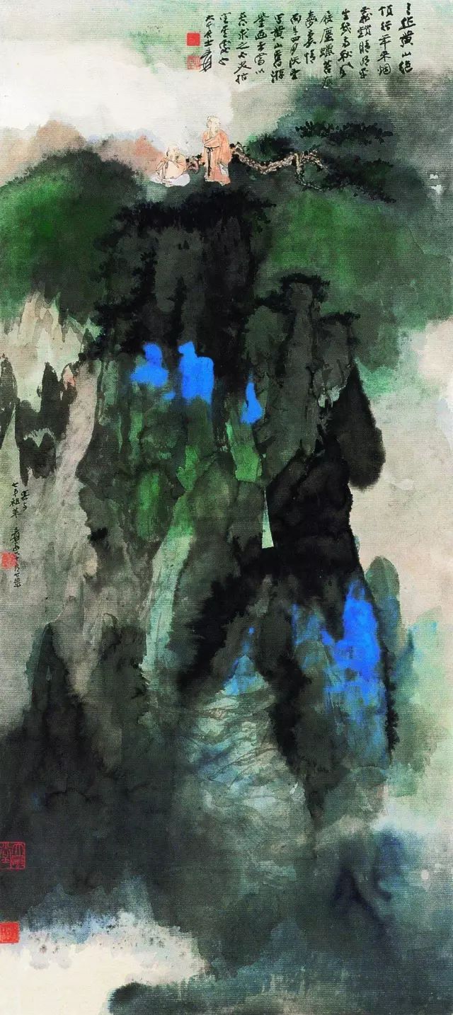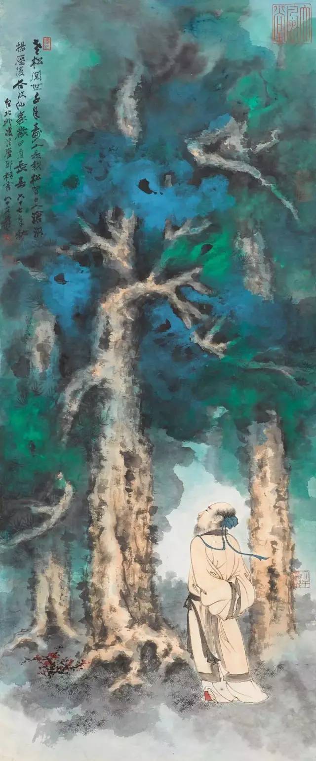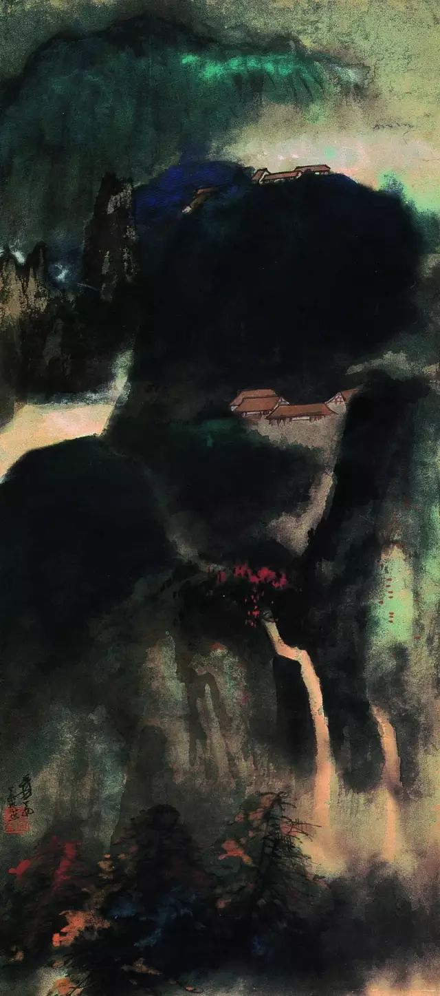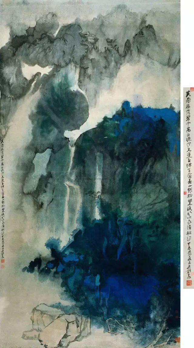 1967年作 幽岚山地 他曾用无数的时间和心血摹仿古东说念主名作,特别是他临仿石涛和八大山东说念主的作品更是惟妙惟肖,几近乱真,也由此迈出了他绘图的第一步。他从清代石涛起笔,到八大山东说念主,陈洪绶、徐渭等,进而广涉明清诸大众,再到宋元,终末上溯到隋唐。 他把历代有代表性的画家逐一挑出,由近到远,潜心盘考。有关词他对这些并不傲气,又向石窟艺术和民间艺术学习,尤其是敦煌面壁三年,摹仿了历代壁画,设立光线。这些壁画以时间跨度论,历经北魏、西魏、隋、唐、五代等朝代。 如多年前香港商场中曾出现一件签字为元四大众之一的古画,即是张大千“仿古作”,拍出接近200万元的高价。为了历练我方的伪古作品能否达到乱真的进度,他请黄宾虹、张葱玉、罗振玉、吴湖帆、溥儒、陈半丁、叶恭绰等赏识名家及宇宙列国闻名博物馆大众们的核定,并留住了许许多多趣闻逸闻。 张大千许多伪作的艺术价值及在中国好意思术史上的地位较之古代名家的真品已过犹不足。现宇宙上许多博物馆都藏有他的伪作,如华盛顿佛利尔好意思术馆储藏有他的《来东说念主吴中三隐》,纽约大都会博物馆储藏有他的《石涛山水》和《梅清山水》,伦敦大英博物馆储藏有他的《巨然茂林叠嶂图》等等。