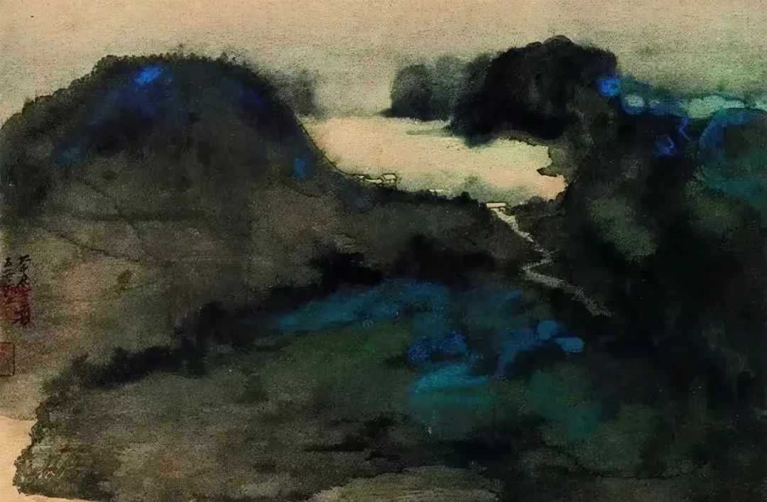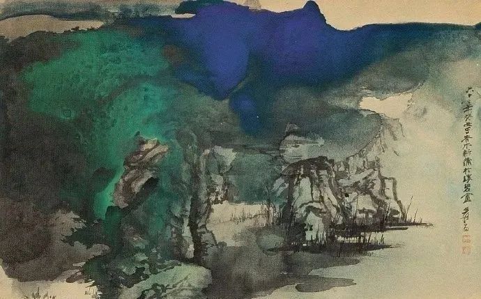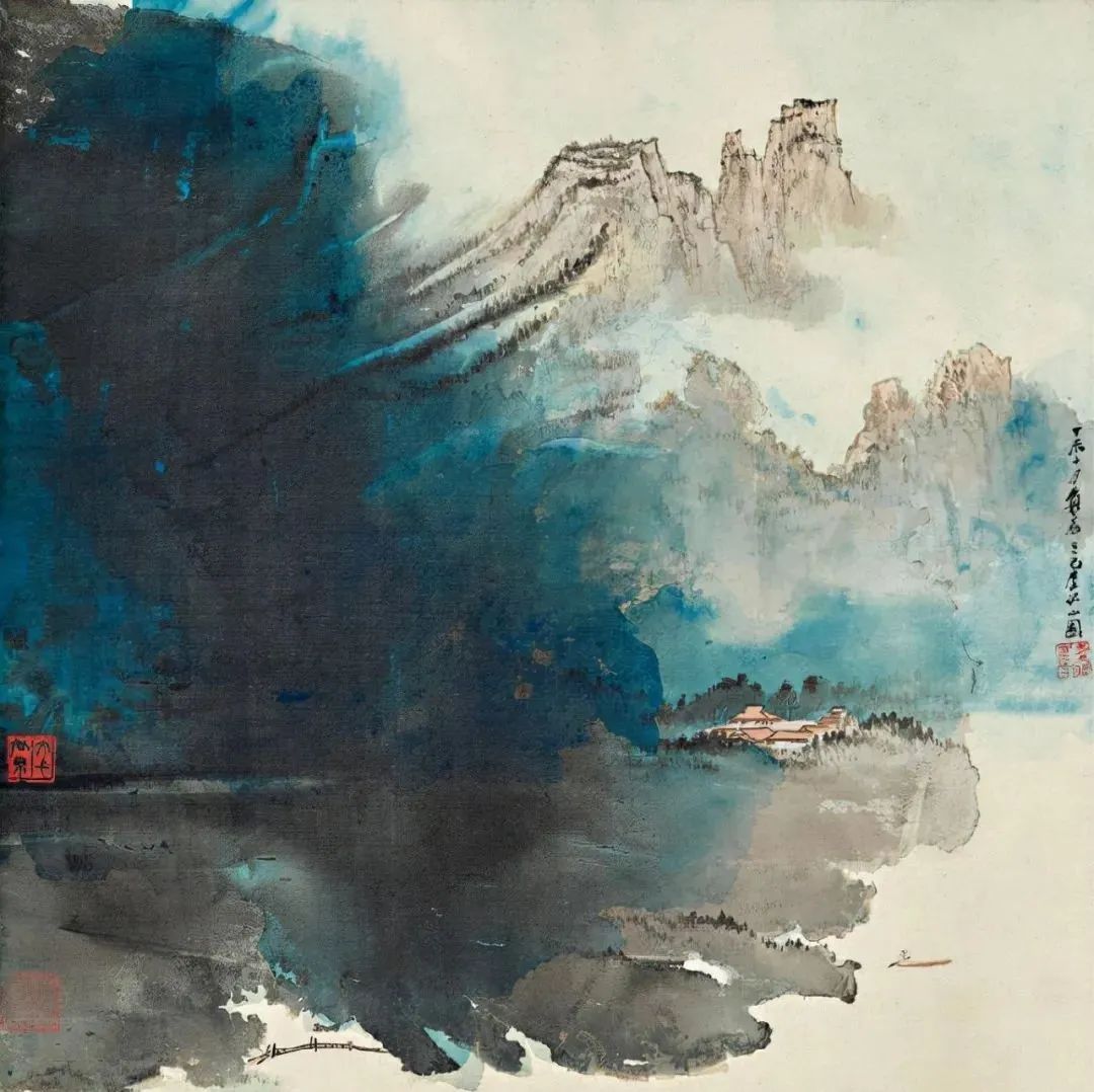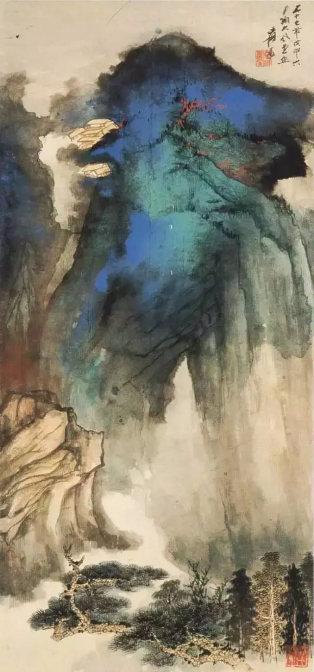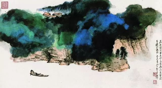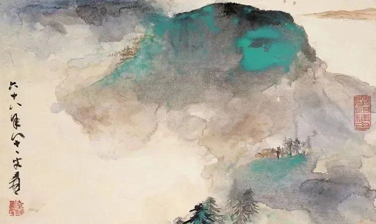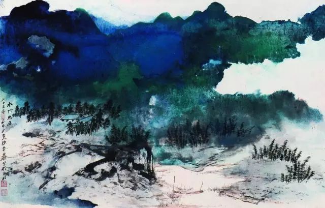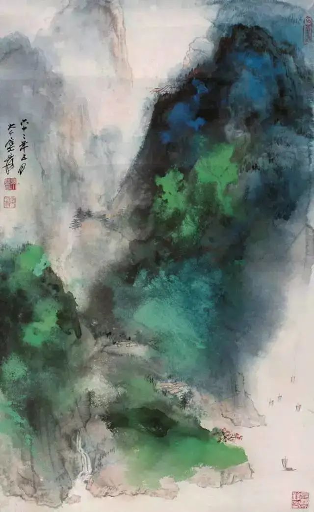 1968年作 泼彩青绿山水图